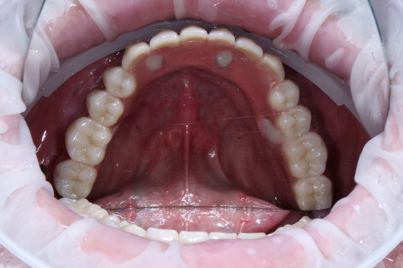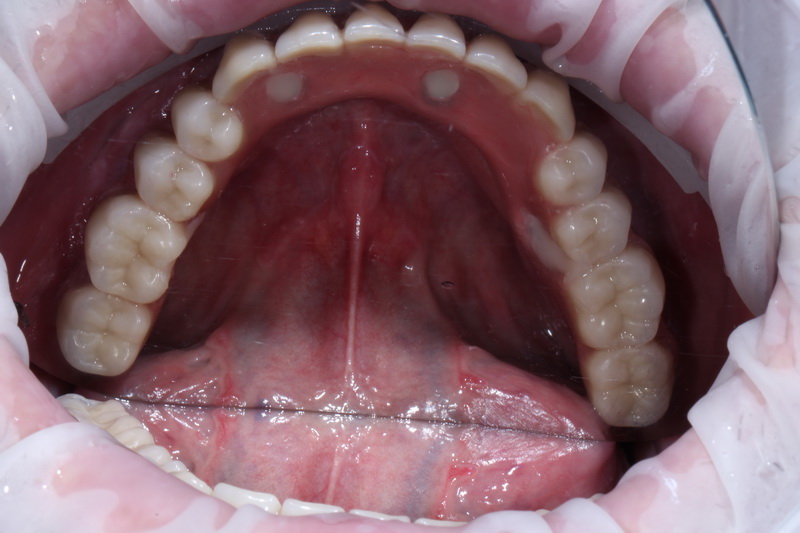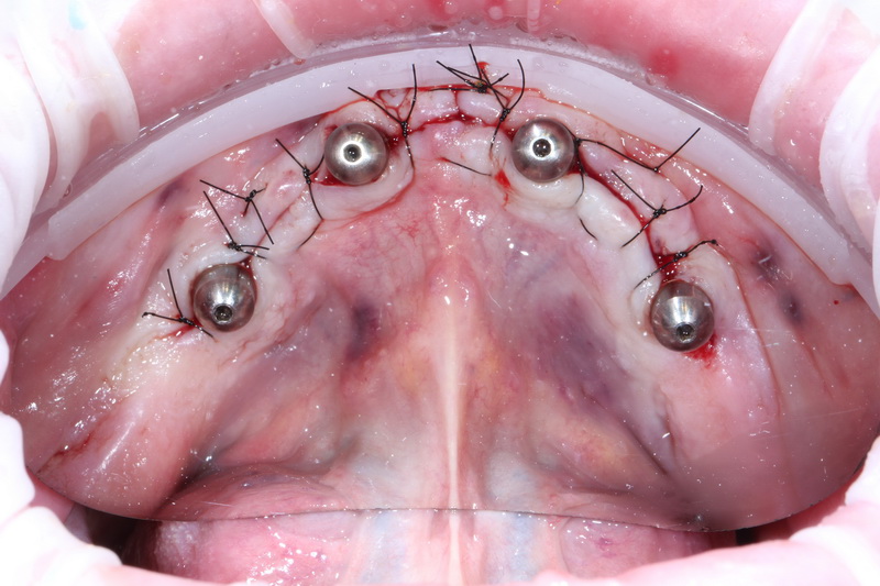 В день операції було проведено лікування, це – встановлення 4-х імплантів на нижній щелепі у попередньо сплановані позиції, з подальшим негайним навантаженням тимчасовим незнімним протезом.